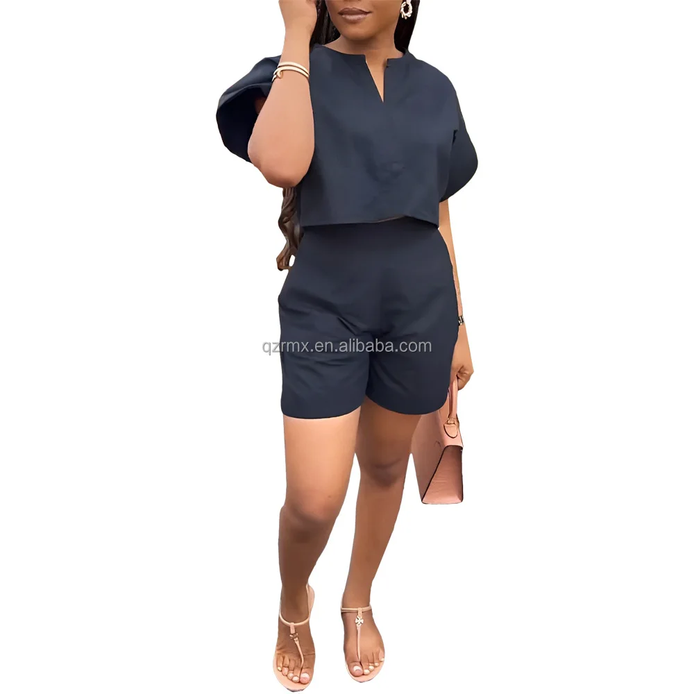 summer 2024 women fashion New solid color loose crop tops and shorts sets for women