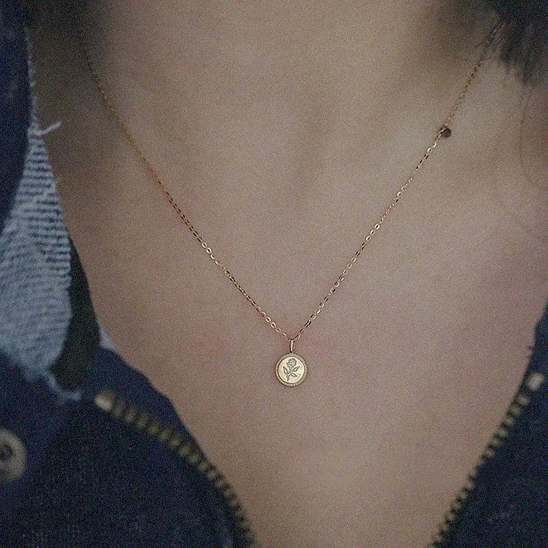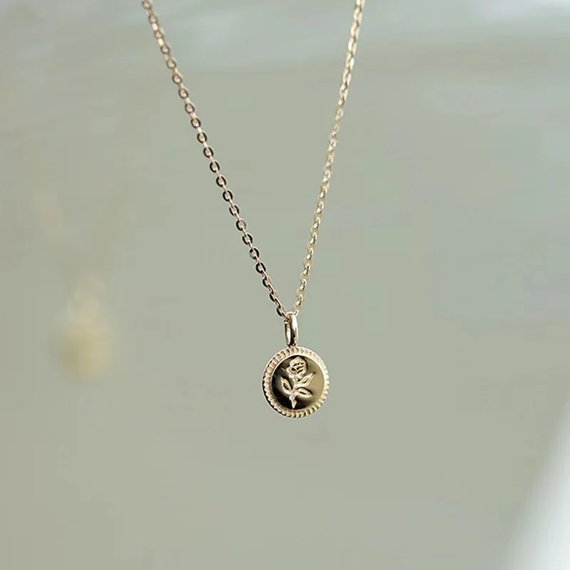 Trendy 14k Gold Plated 925 Sterling Silver Jewelry Rose Flower Coin Pendant Necklace For Women