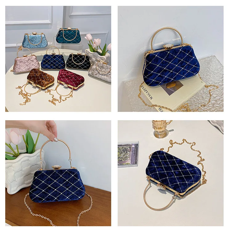 Vintage Women Party Box Clutch Bag Velvet Exquisite Design Elegant Clutches For Ladies Girls Wedding Purse Luxury Evening Bag