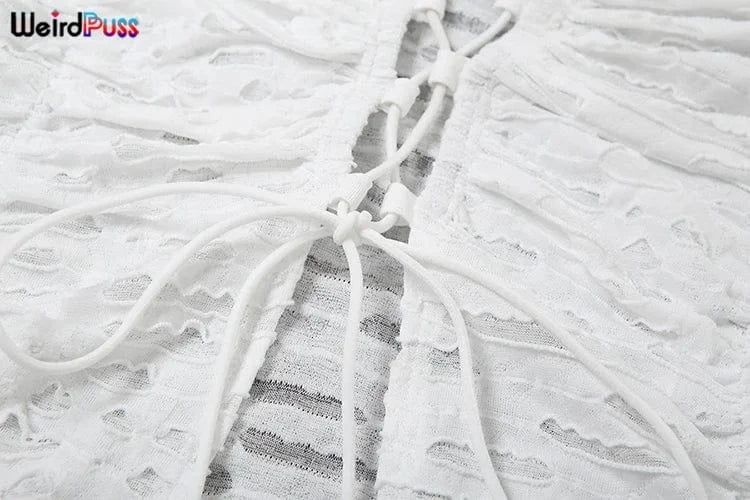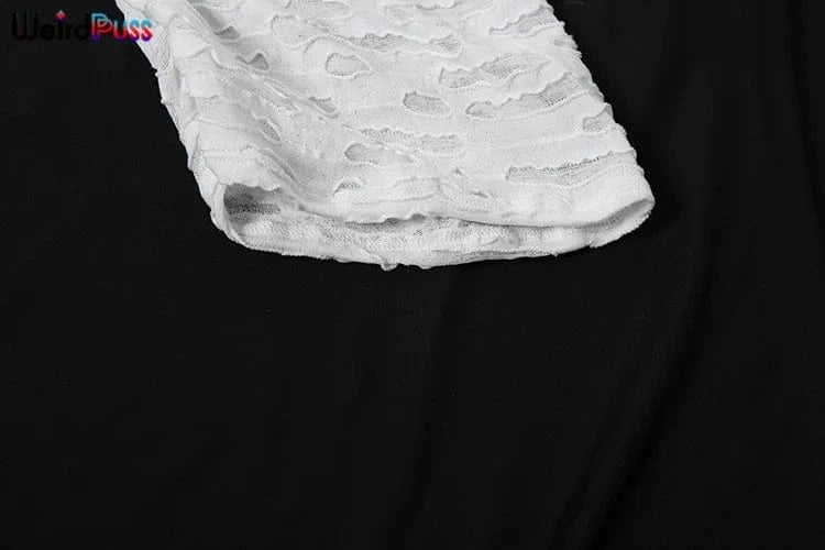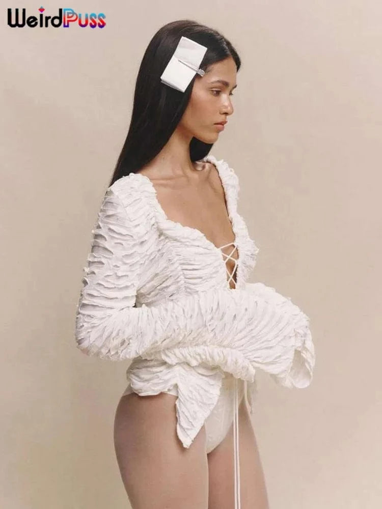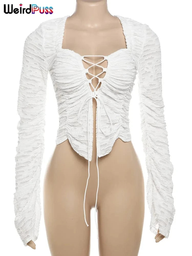 Weird Puss Ripped Chic Crop Tops Women Autumn Elegant Shirring Square Collar Elegant Ruched Full Sleeve Solid Streetwear Tees