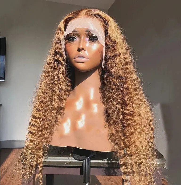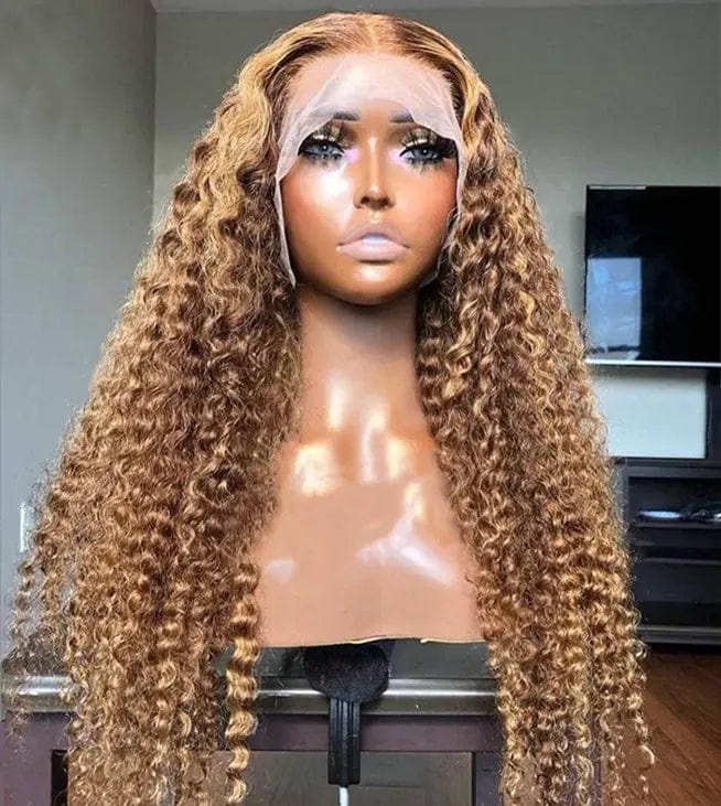 Wholesale Brown Curly Wigs Unprocessed Peruvian Human Hair 13*4 Lace Front Wigs for Black Women
