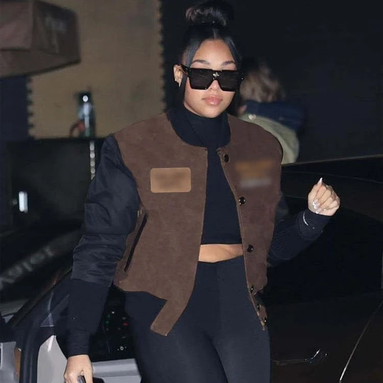 Wholesale designer clothing winter long sleeve cropped jackets fall fashion baseball jacket women