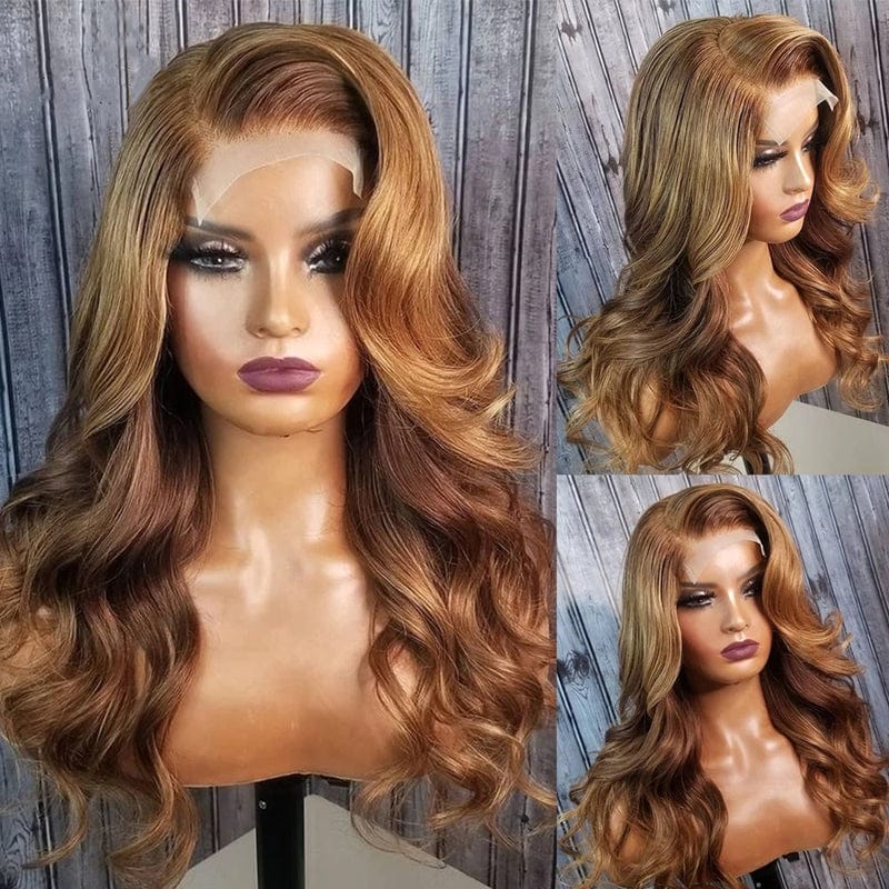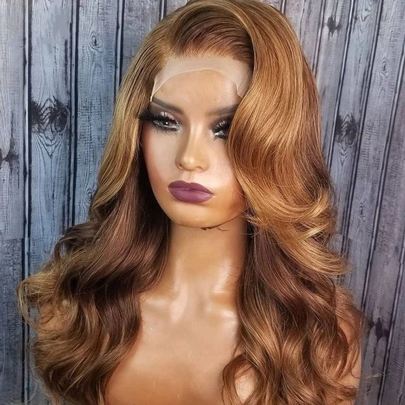 Wholesale Honey Brown Align Virgin Human Hair Wigs Luxury Pre-Plucked Body Wave Customized Lace Front Wig