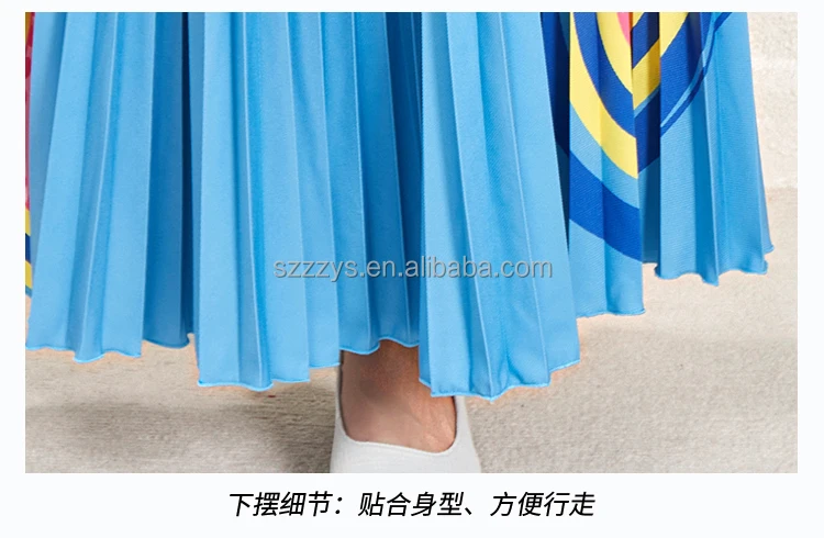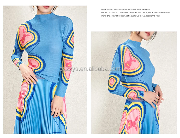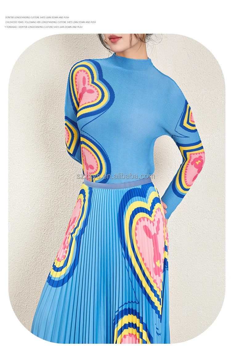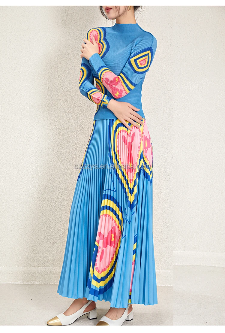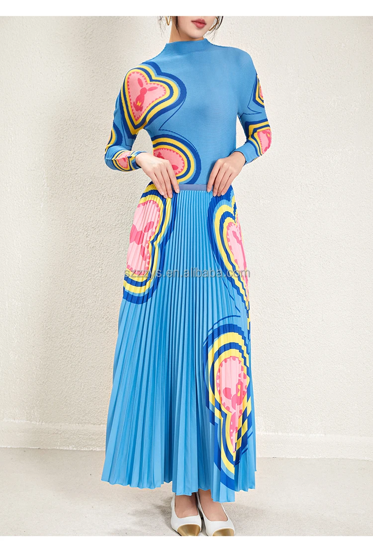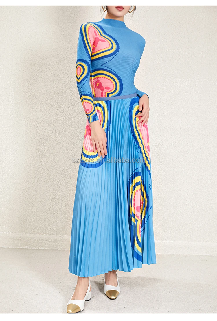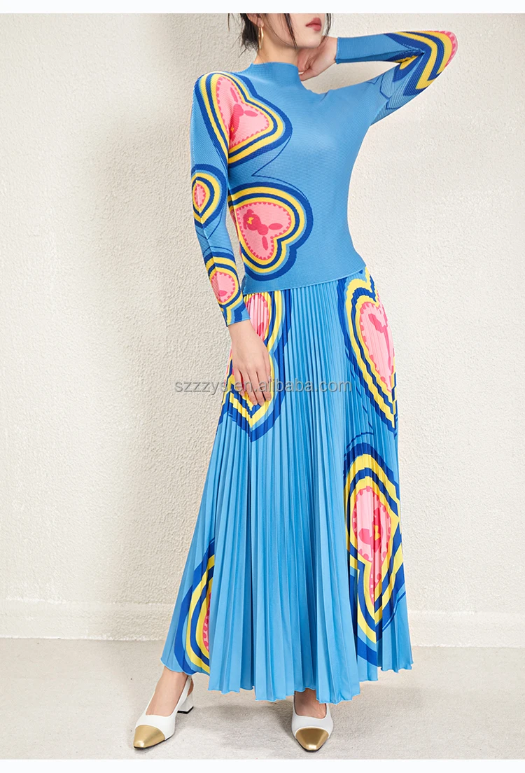 Wholesale Pleated Skirt Set 2024 Latest Accept Custom Printed Long Sleeve Top Printed Long Pleated Skirt Two Piece Set