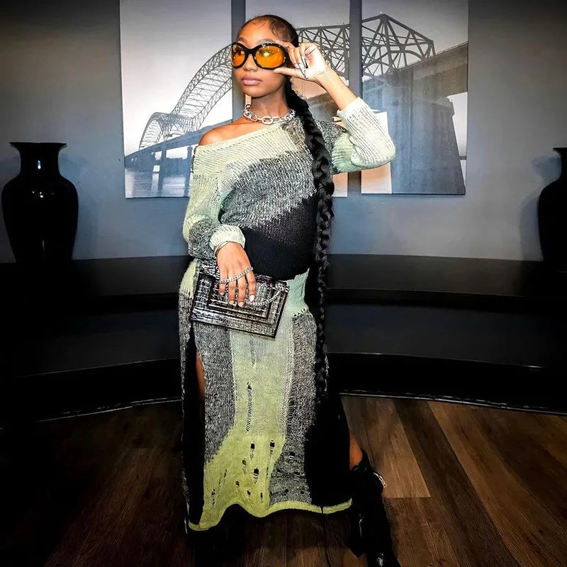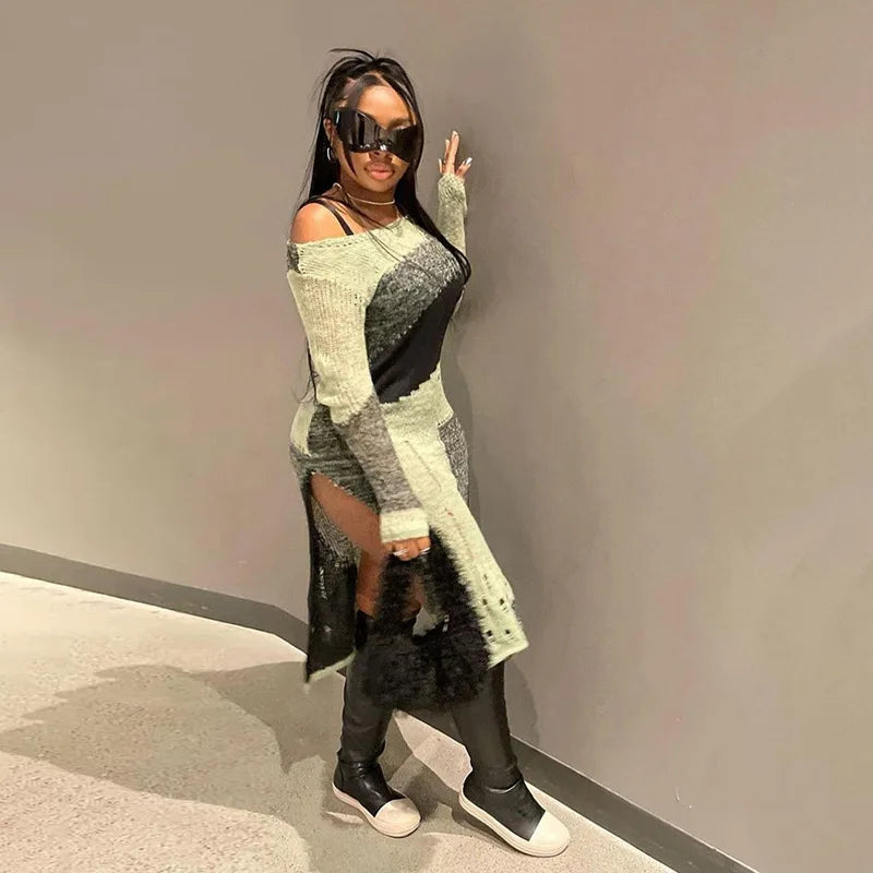 Wholesale winter long sleeves sexy slit dress casual knit sweater midi dresses women