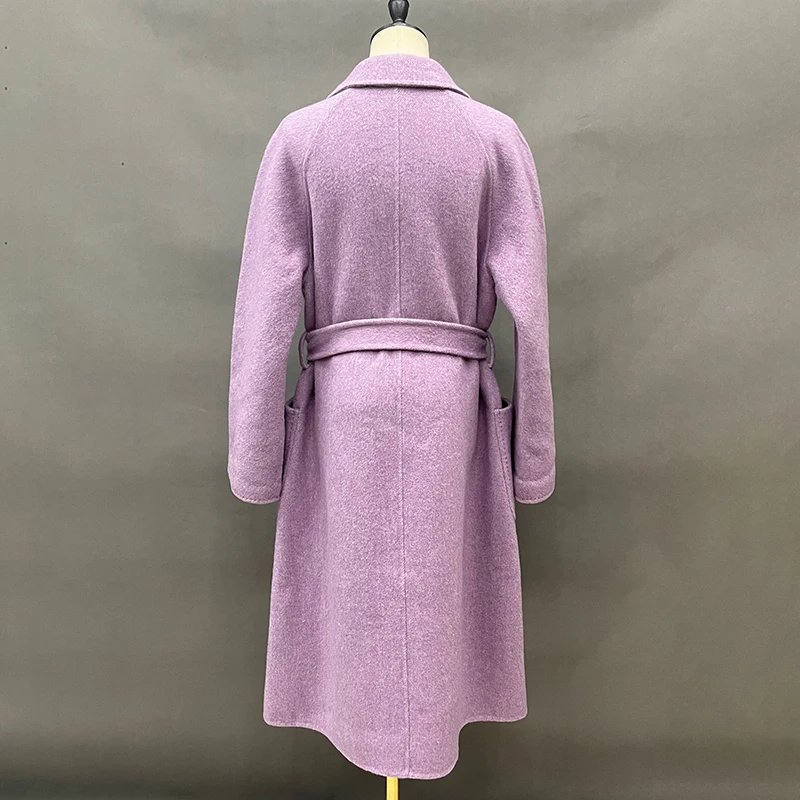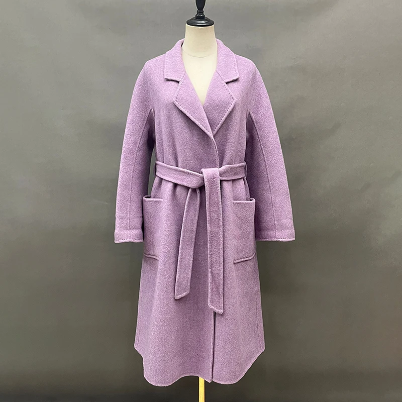 Winter Belted Long Wool Coat Elegant Handmade Overcoat Long Cashmere Coat for Women