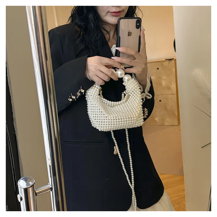 Women Pearl Handmade Beaded Pouch Totes Evening Bags Clutch Wallet Magic Handbags Ladies Wedding Bridal Handbag Party Purse Bag