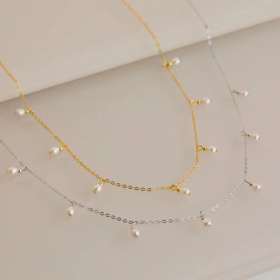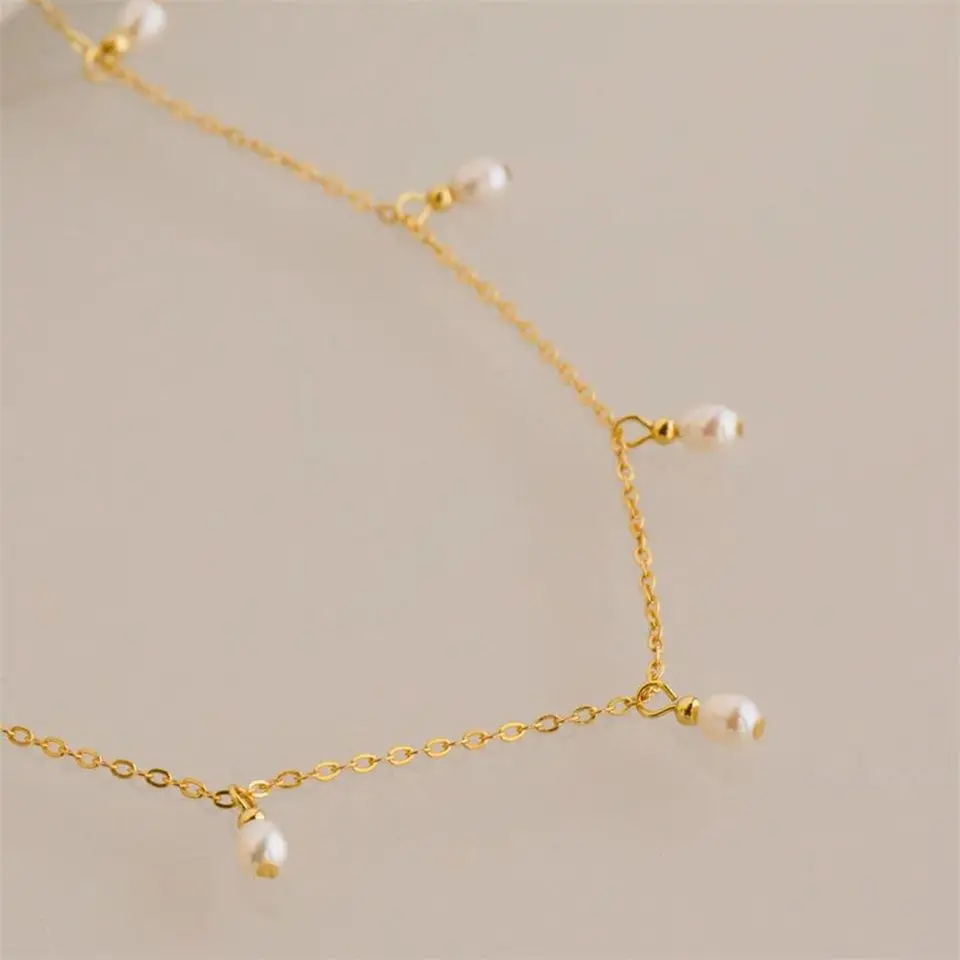 Women Stainless Steel 14k Gold PVD Plated Chain Pearl Necklaces Fine Jewelry Hot Sale