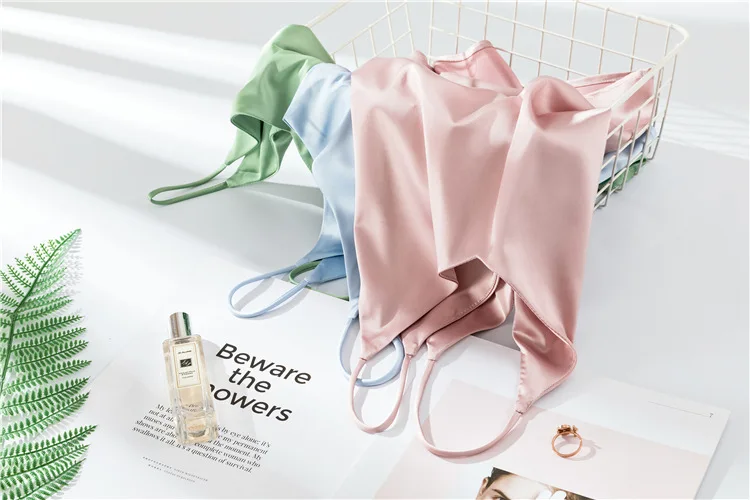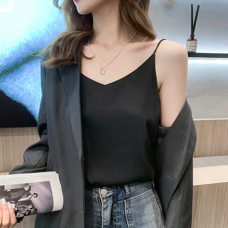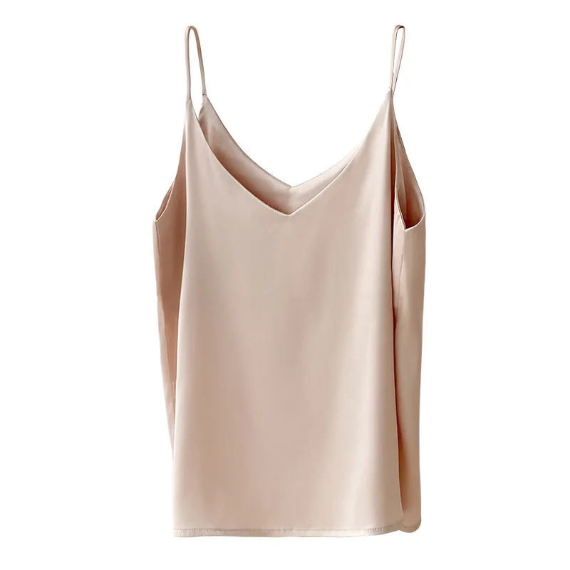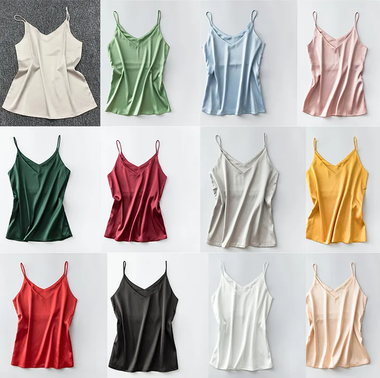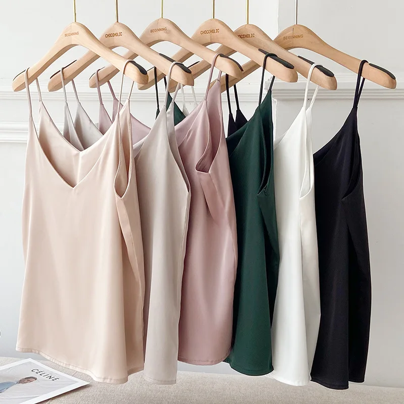 Women Summer Silk-Like Satin Tank Top Camisole Ladies Bottoming Shirt Sexy V-Neck Plain Camis 2023