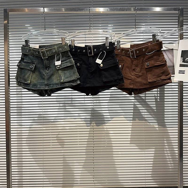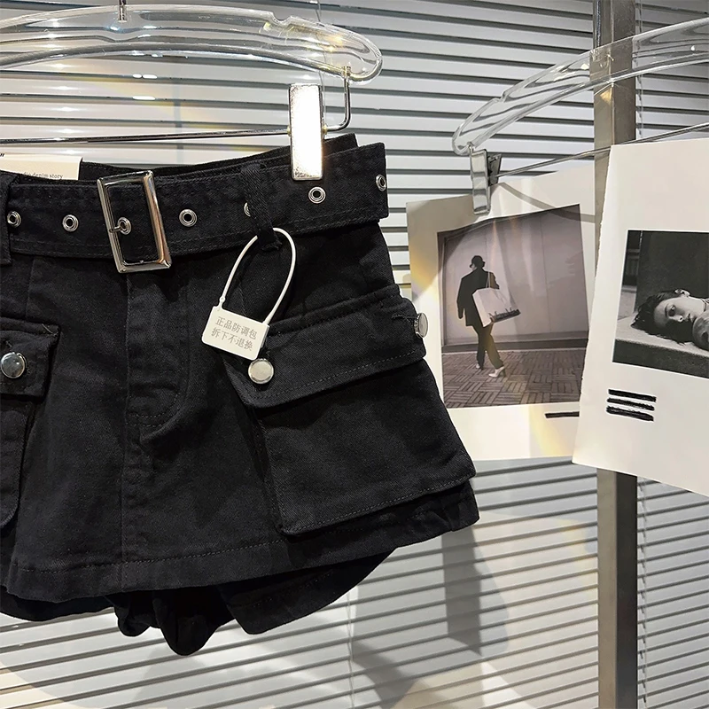 Women's Black Denim Cargo Shorts Fashion High Waist Ladies Streetwear Baggy Cowboy Shorts Jeans 2000s Y2k Harajuku 2000s Clothes