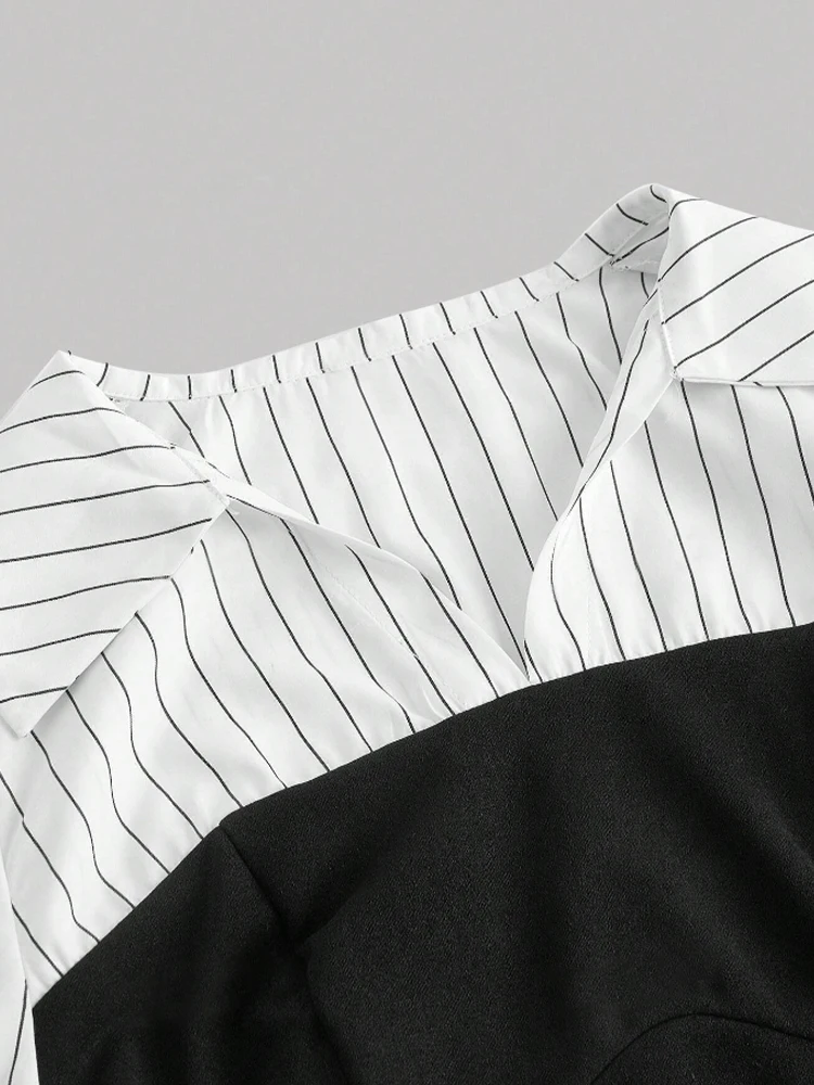 Women's Fashion Striped Spliced Lapel Shirt Elegant Fashion Style Business Casual Office Wear
