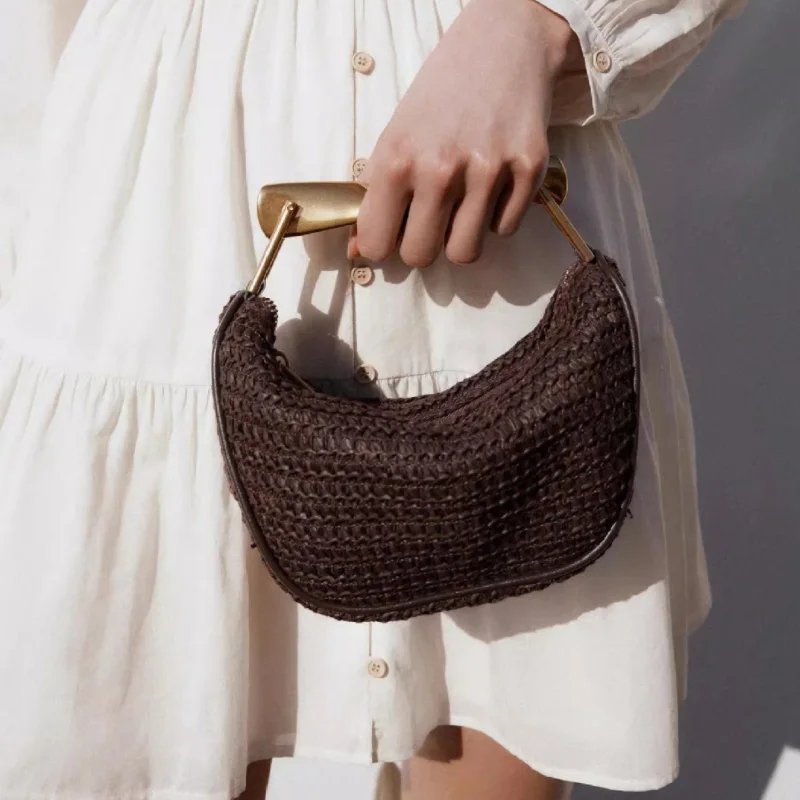 Women's Woven Bag Fashion Luxurious Simple Metal Evening Clutch Casual Versatile Vintage High-end Design Women's Shoulder Bag