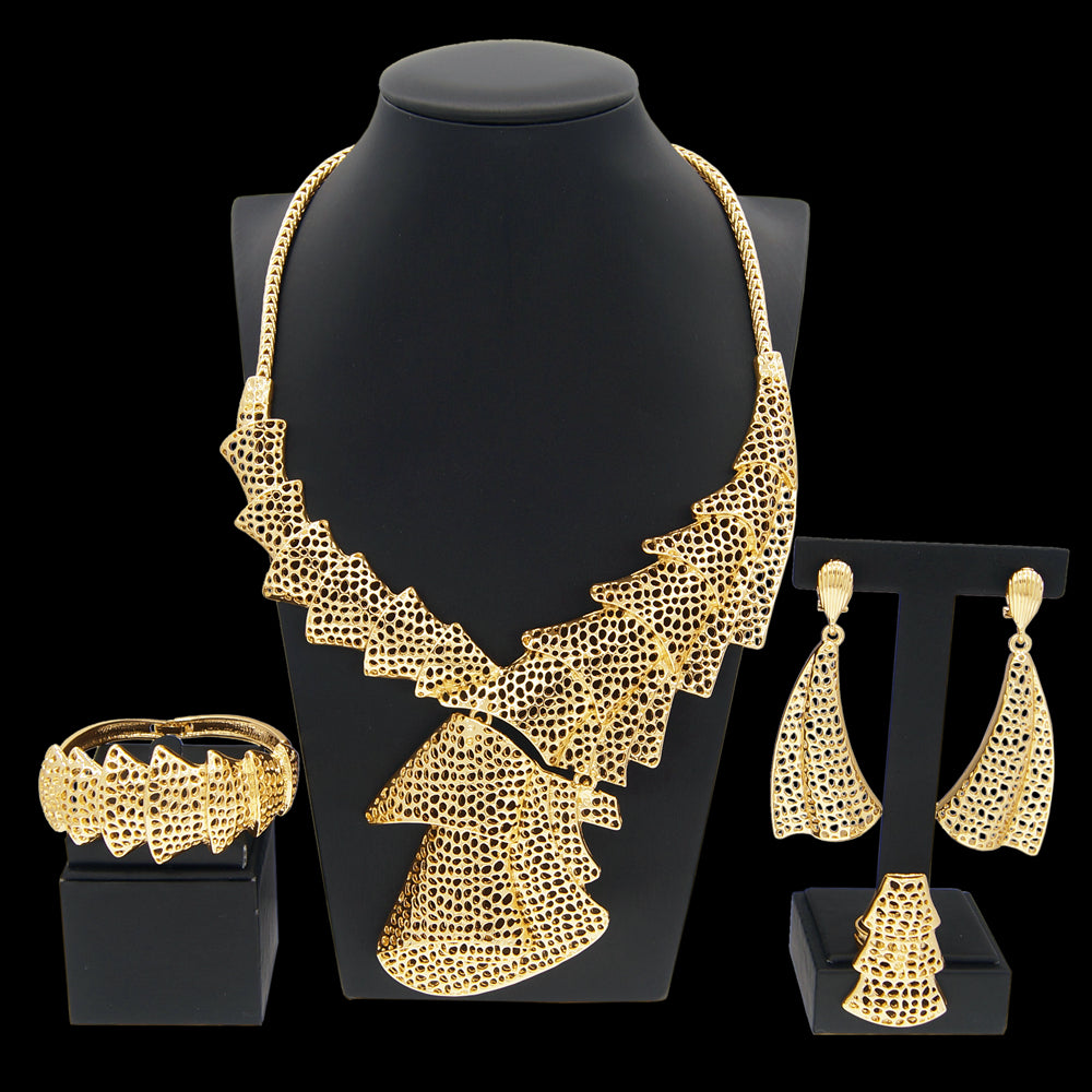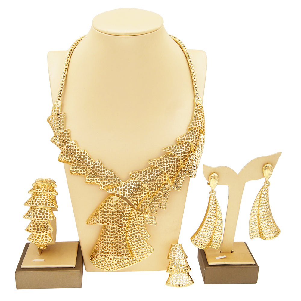 Yulaili High Quality Italian Gold Plating Bracelet Necklace 4 Pieces Jewelry Set Women Daily Costume Accessories