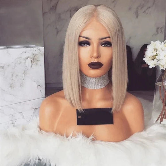 Blonde Lace Front Wig Bob Style Cambodian Human Hair Short Wigs for White Women