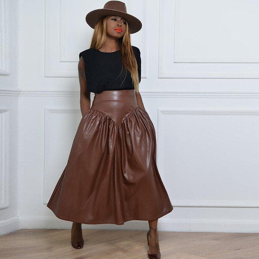Z68641 Winter Fashion Bottoms Sexy Solid High Waist women Casual PU Leather long skirt