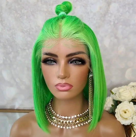 Wholesale Glueless Green Color Lace Front Wigs Bob 100% Peruvian Human Hair Yellow Red Grey Blue Frontal Wigs For Black Women