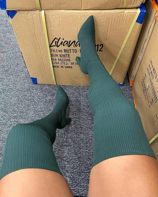 LE SLIDES WinterPlus size elastic over-the-knee knitted boots fashion high-heeled thick-heeled wool socks boots