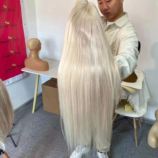 Custom Private Label Transparent Lace 613 13x6 HD Lace Frontal Wig Human Hair Small Cap Invisible C Shape Ear Cap Design For Wig