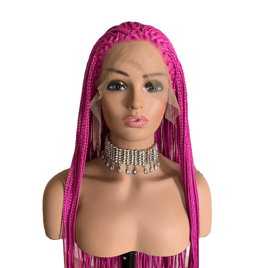 Rose Pink Color Synthetic Human Hair Wigs 30 Inches Long Synthetic Lace Front Wig Box Braid Wigs For Women