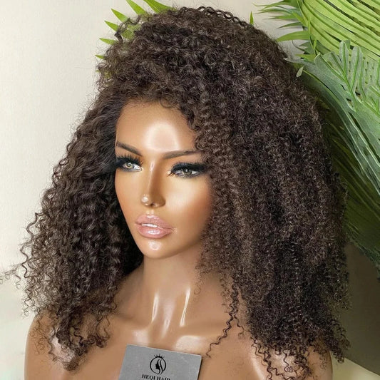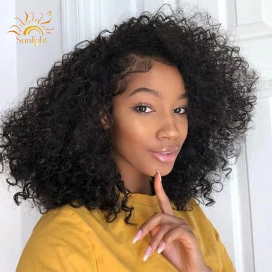 Sunlight Mongolian Kinky Curly Wig 150 Density Afro Kinky Curly 13x4 Lace Front Human Hair Wig Pre Plucked with Baby Hair