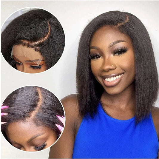 Transparent Swiss Lace 100% Raw Vietnamese Virgin Hair Bob Wig Kinky Straight Glueless 13x6 Hd Human Hair Lace Front Wig
