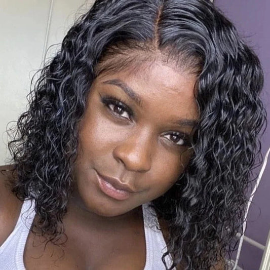Wholesale Short Water Wave Bob HD Swiss Transparent Lace Front Wig For Black Women Natural Virgin Brazilian Human Remy Hair Wigs