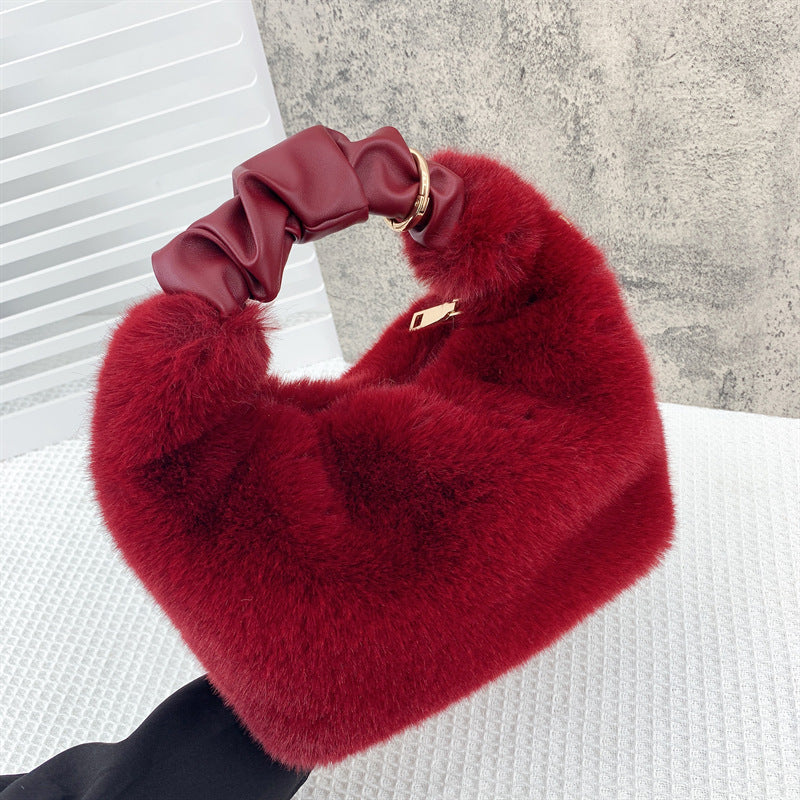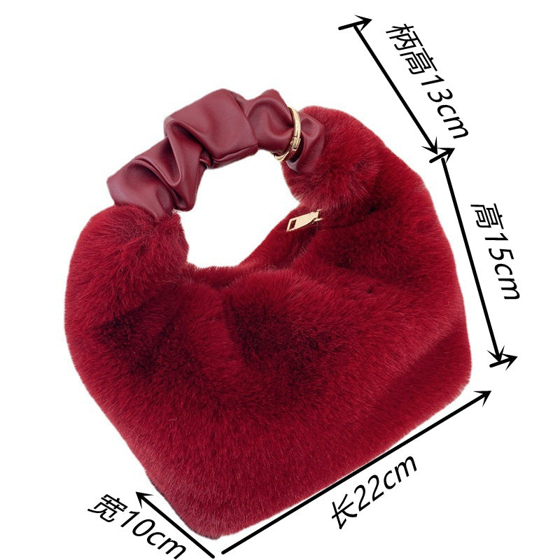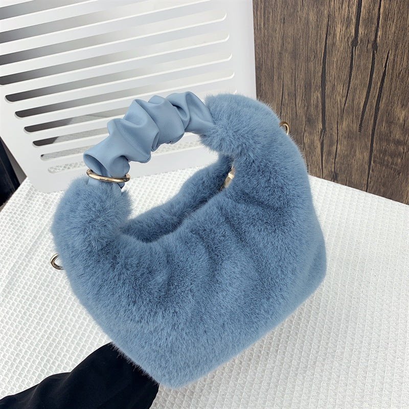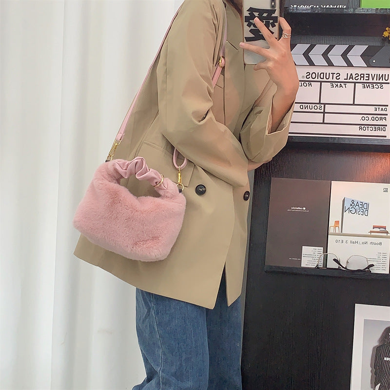 2022 New Wrinkled Handle Furry Purse Trendy Fashion Luxury Crossbody Plush Winter Warm Faux Fur Handbags for Women