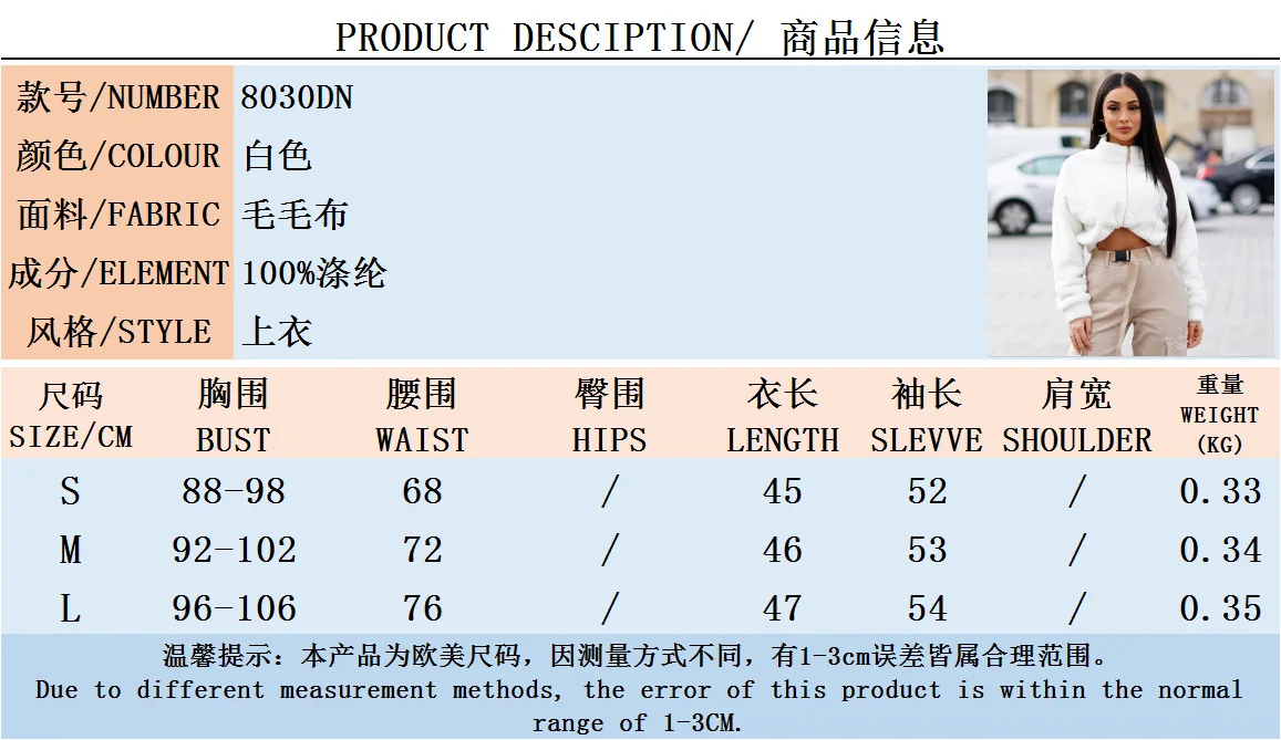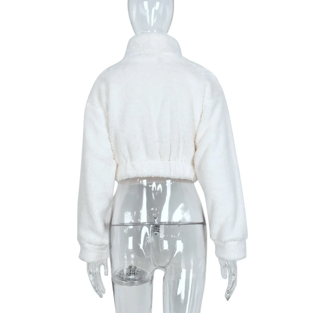Women Warm Winter Clothing Zip Up Sweatshirt Long Sleeve Crop Top Fur Coat