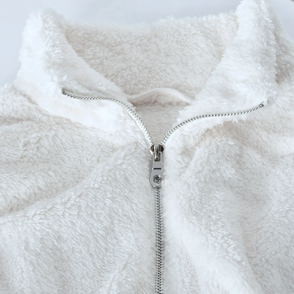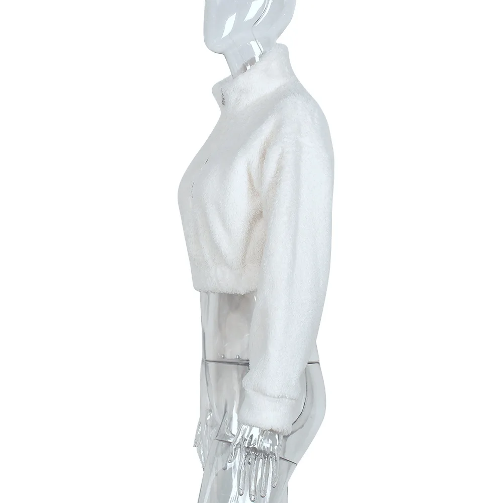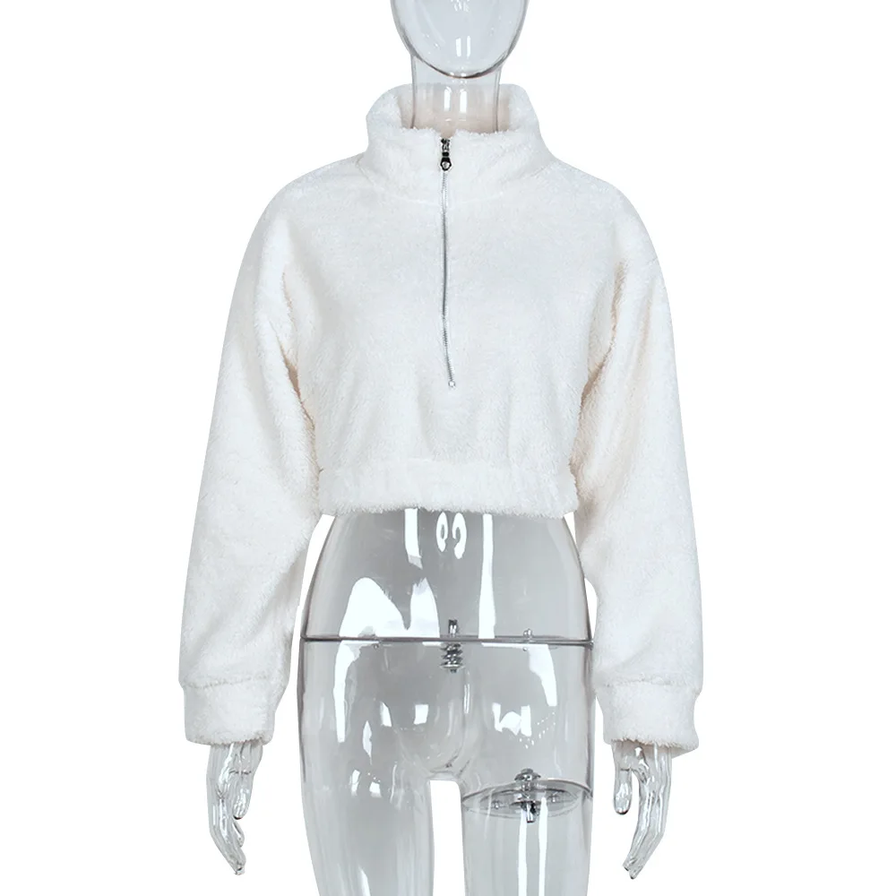 2023 Fall Winter Clothing Sweat Shirts Women Stand Collar Zip Up Long Sleeve Fluffy Crop Sweatshirt