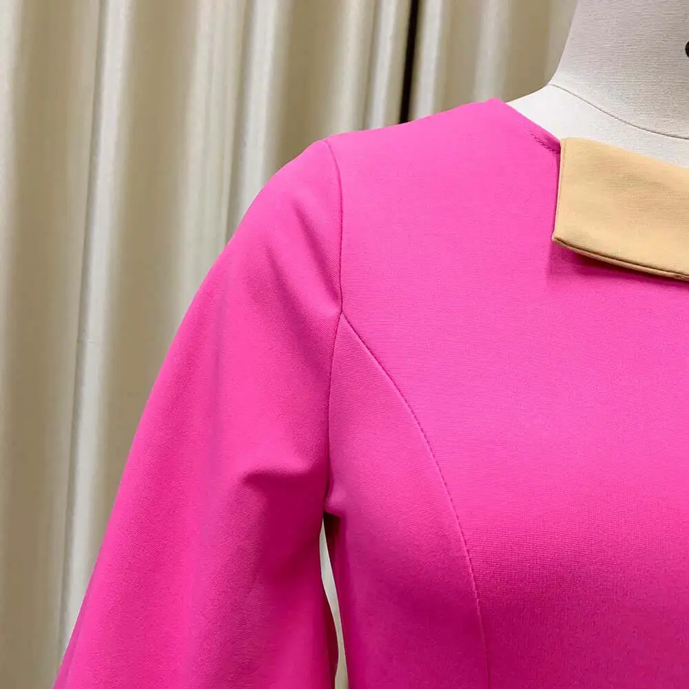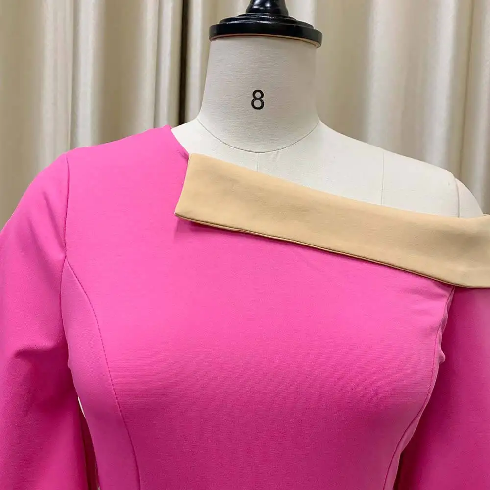 2023 Latest Plus Size Ladies Office Dress Color Blocking Off Shoulder Puff Sleeve Casual Dresses Slim Career Dresses