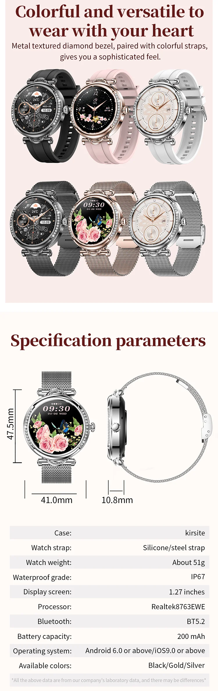 1.27-inch full circle full touch, master 8763E, call, electric reminder push, SMS reminder push, WeChat reminder push, QQ reminder push, exercise record (step counting, mileage, etc.), vibration, more than 100 exercise modes, 4 sets of themes, weather, sleep,