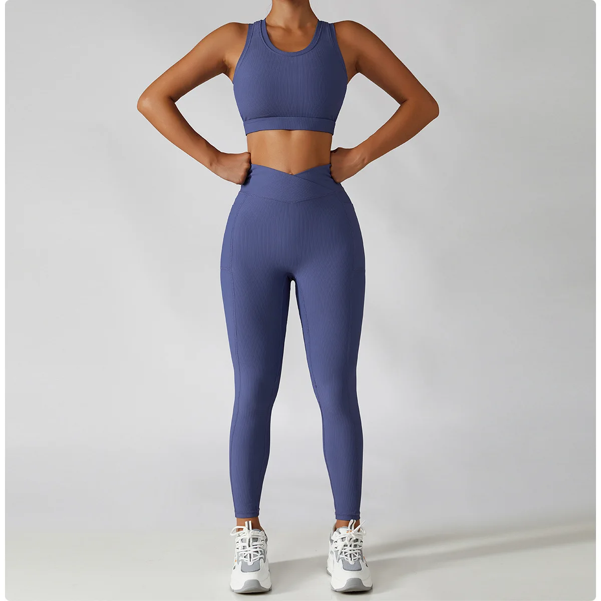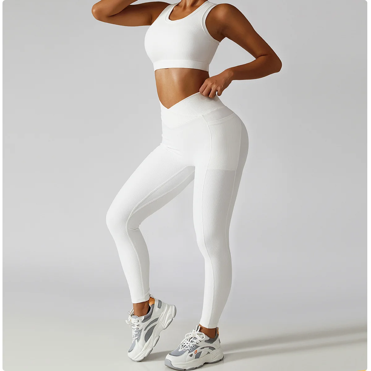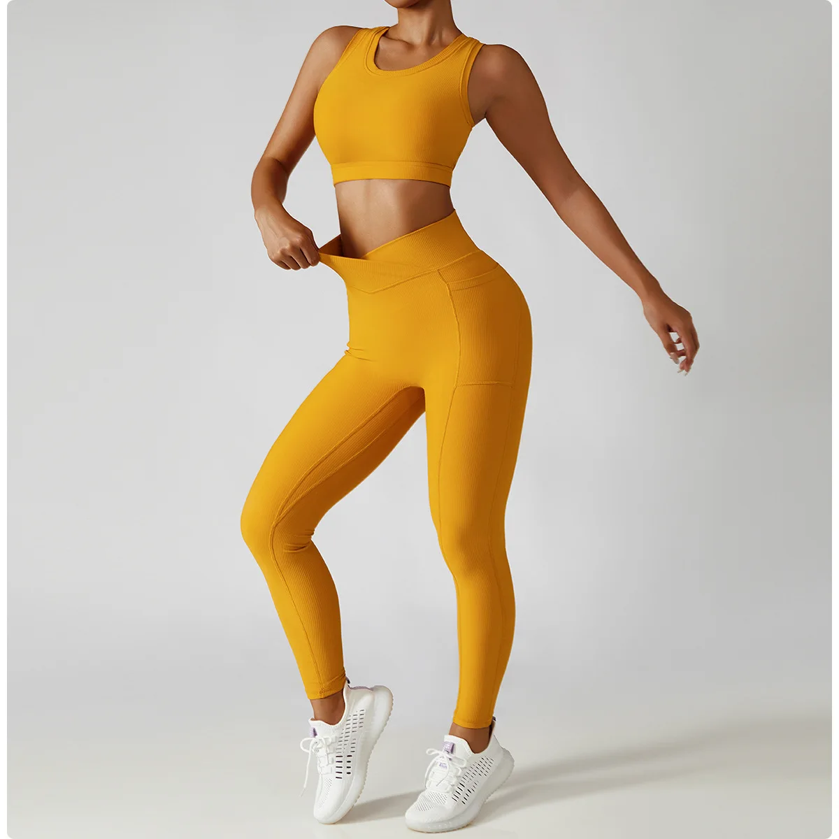 2024 Fitness Yoga Leggings set Workout Bra Gym Yoga Suit Ribbed Seamless Activewear Active Wear Set with pockets