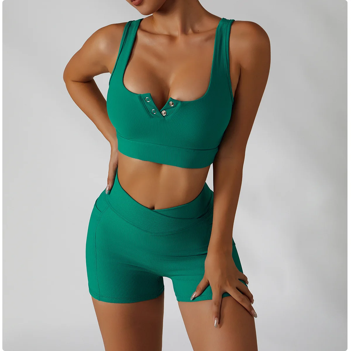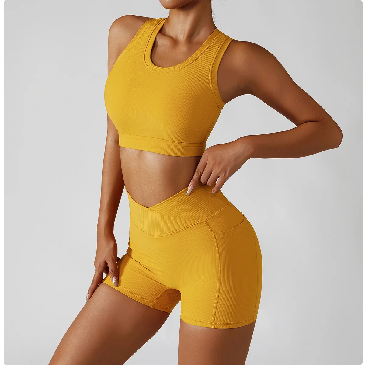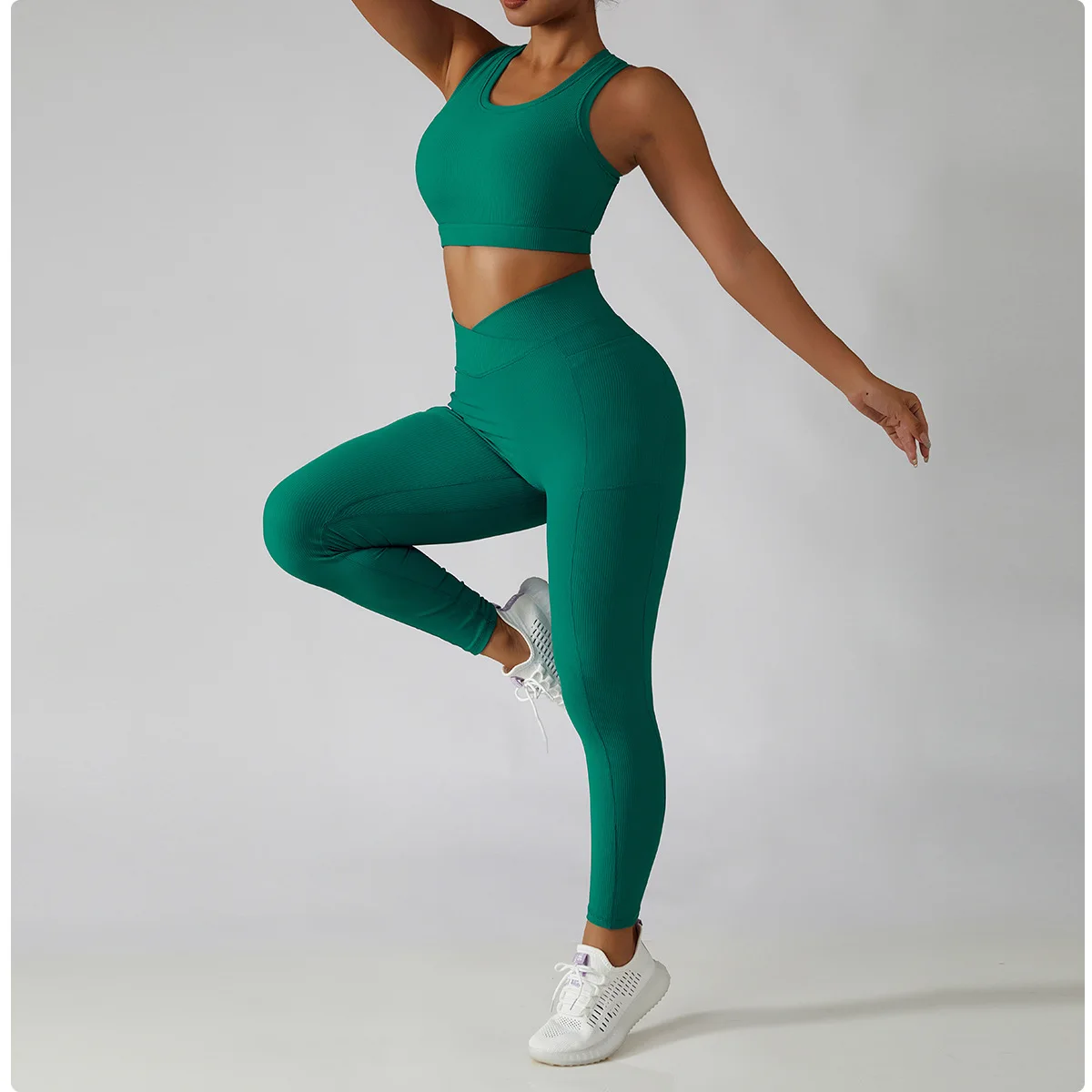 2024 Fitness Yoga Leggings set Workout Bra Gym Yoga Suit Ribbed Seamless Activewear Active Wear Set with pockets