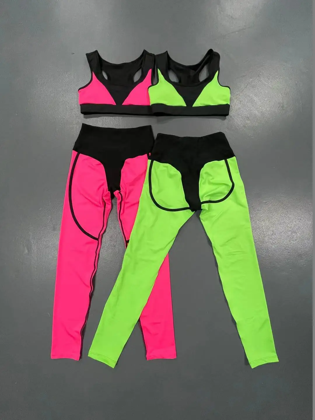 2024 new sports splicing hip fitness suit high waist hip tight quick drying Yoga suit