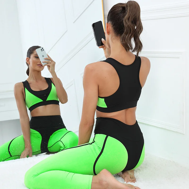 2021 New Sport Suit Push Up Yoga Pants Bra Women Patchwork Yoga Set High Waist Patchwork Stretchy Fitness Outfit Gym Wear