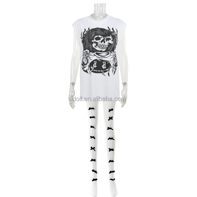 2024 Summer Sexy Solid Color Slim Fit Bowknot Foot Leggings Stockings And Graphic T Shirts Streetwear Womens Sleeveless Tees