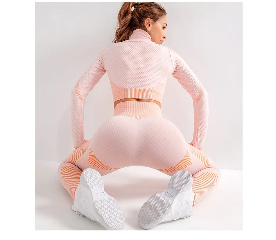 Women Hip Lifting Slim Elastic sports clothes suit knitting hip lifting elastic Fitness long sleeve yoga sets