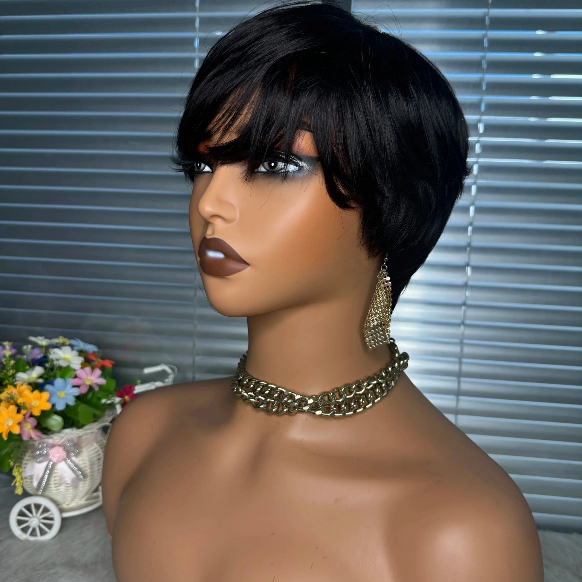 613 Honey Blonde Straight Short Pixie Bob Cut Wig With Bangs Indian Human Hair Full Machine Wig For Black Women