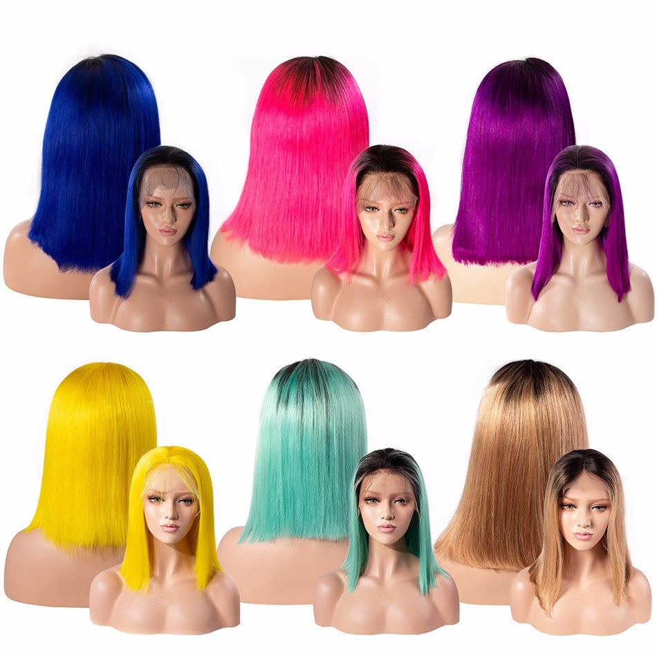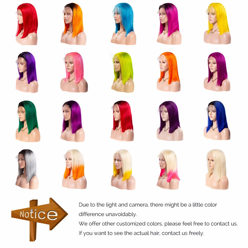 8 10 12 inch Short bob Wig Blue Bob Lace Front Wig 613 Blonde Pink Red Grey Orange Green Purple Ombre colored Wigs 13x4 Lace Front Human Hair Wigs
