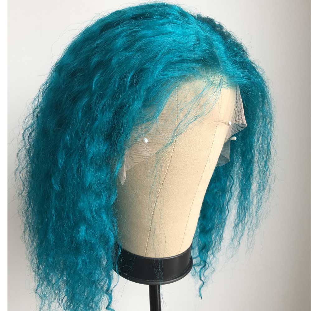 8 10 12 inch Short bob Wig Short Blunt Cut curly Bob Lace Front Colored pink yellow green red Human Hair Wigs Curly Remy Invisible Transparent Wig 130%
