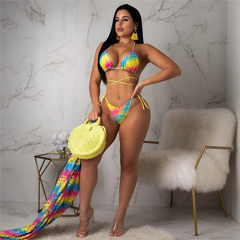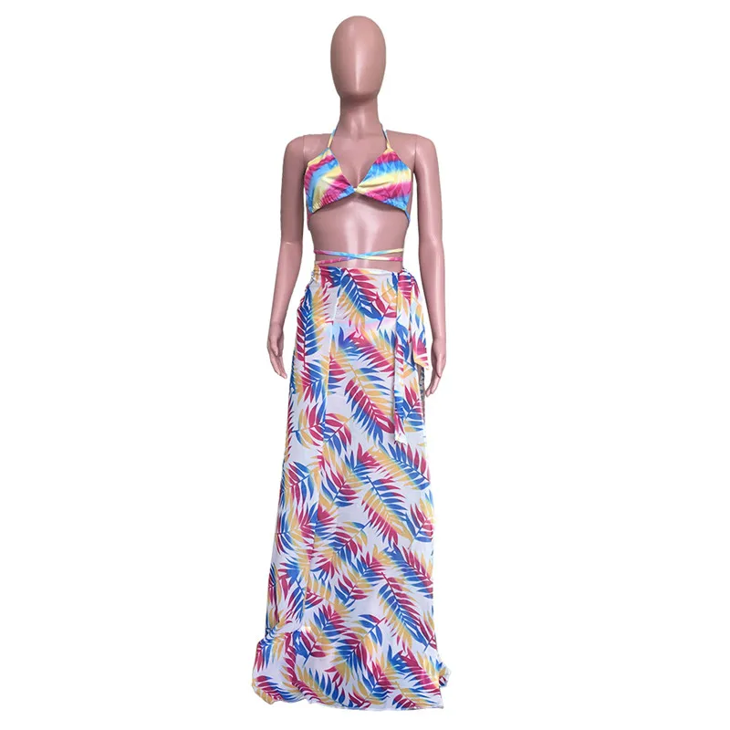 A5036 2024 Brand New Long Skirt Bikini Suit Halter Fashion Sexy 3 Piece Bikini Set Women