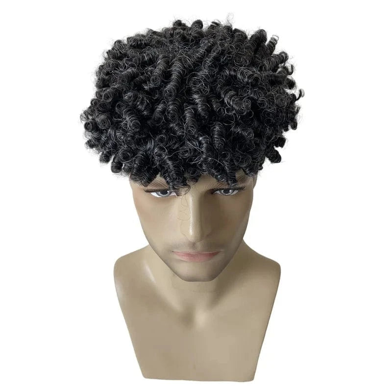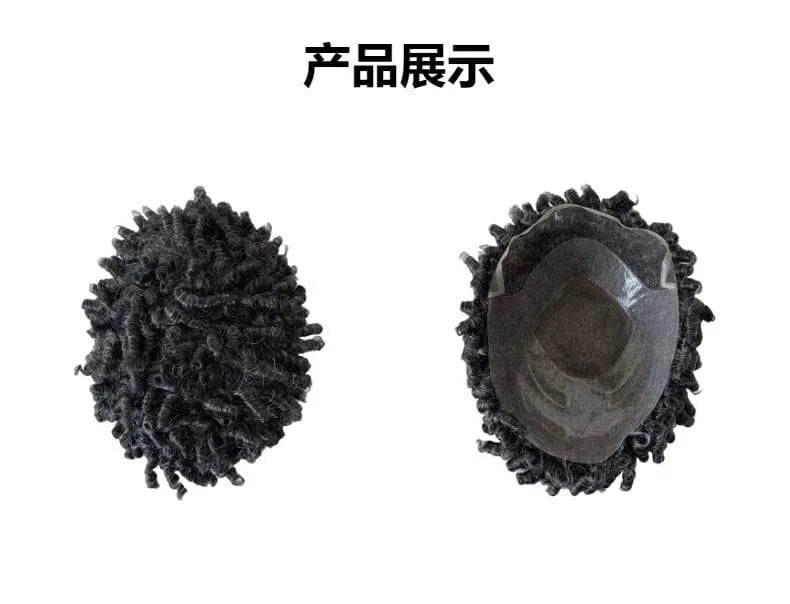 Afro Toupee 4mm-15mm Weave Hair Black Kinky Curly Male PU Skin 1B30# 8*10'' Toupee for Black Men Hair Wigs