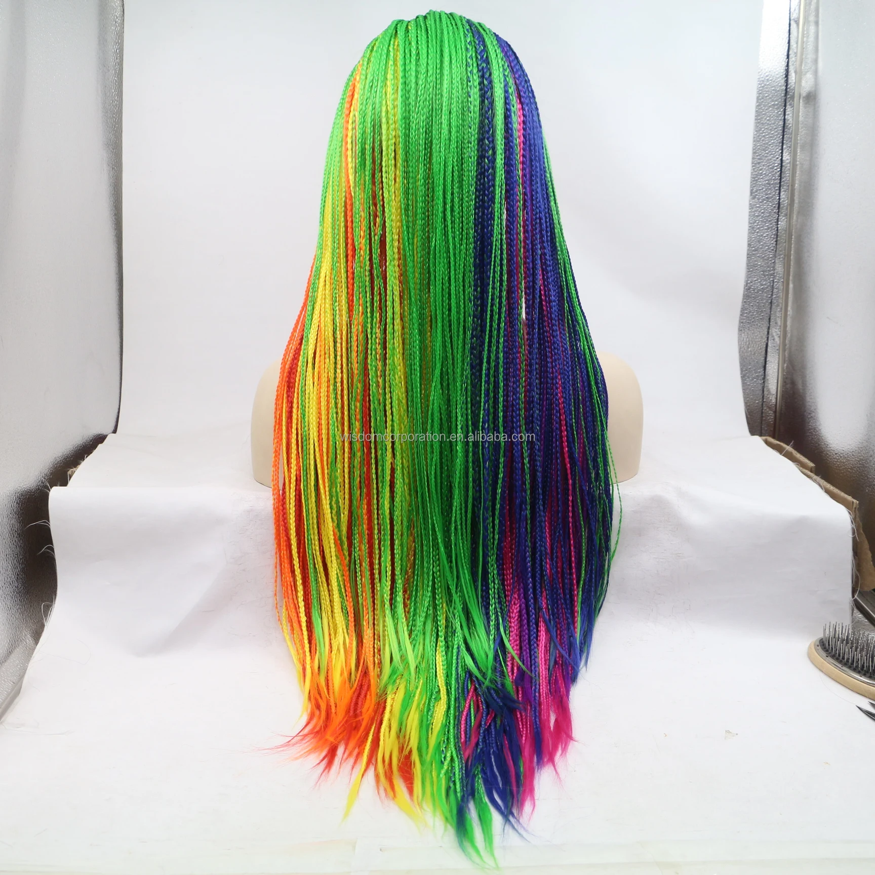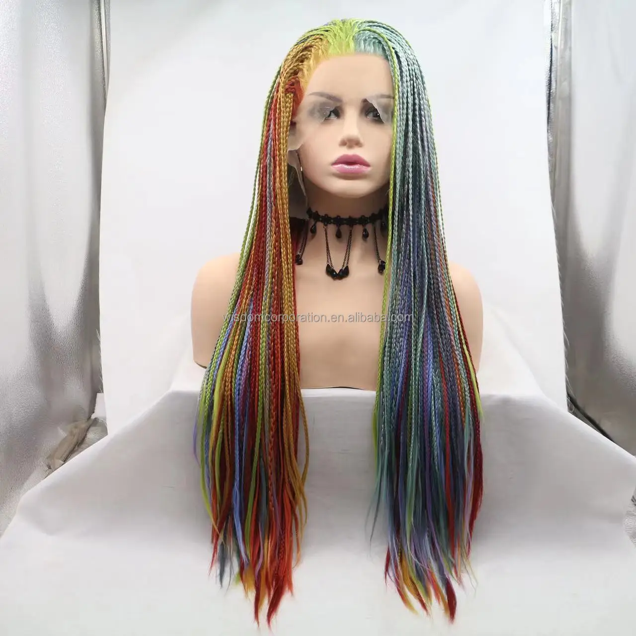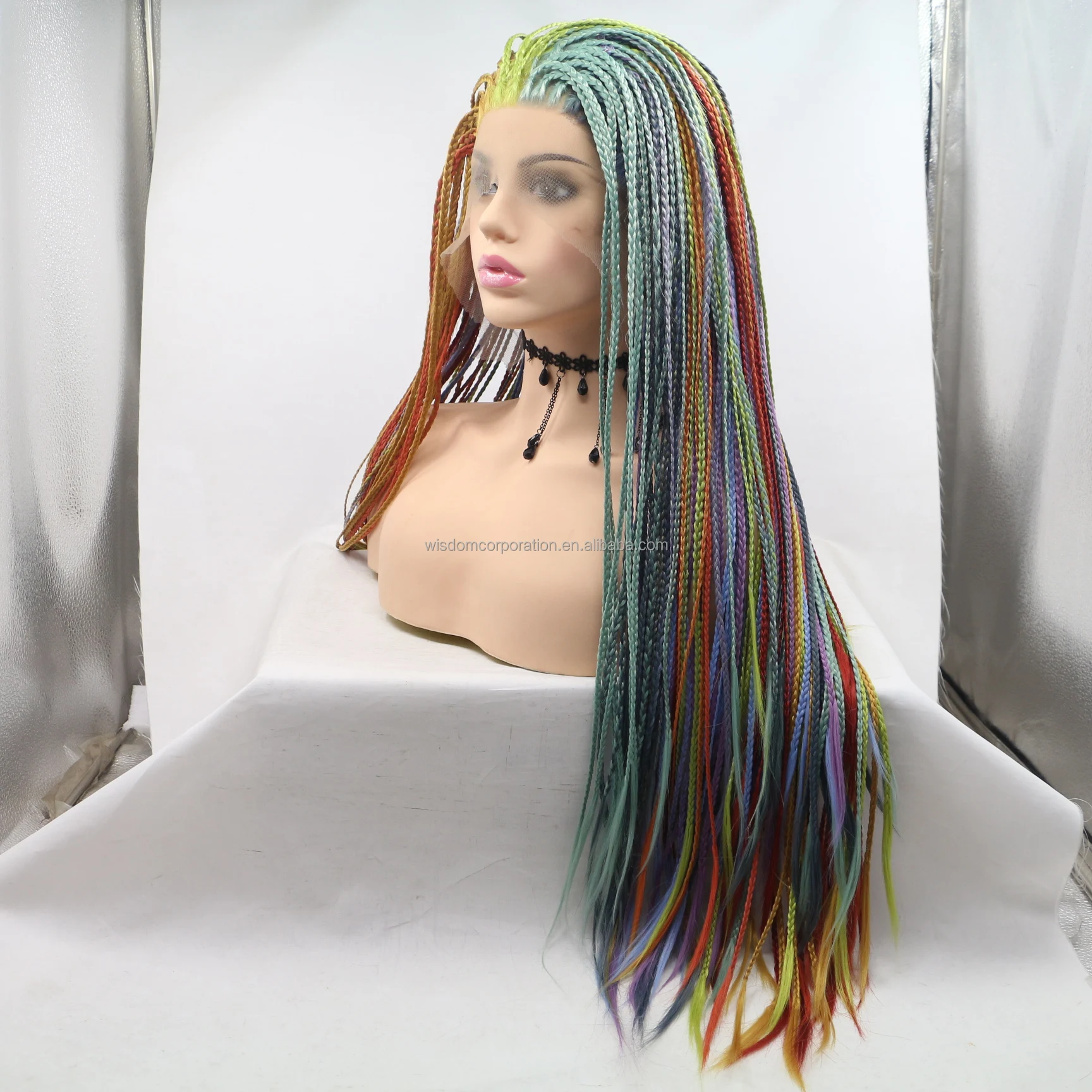 Amazon Popular Seller Full Braid Box Wig 13x4 Front Lace Heat Resistant Colorful Synthetic Hair Braid Wig Cosplay