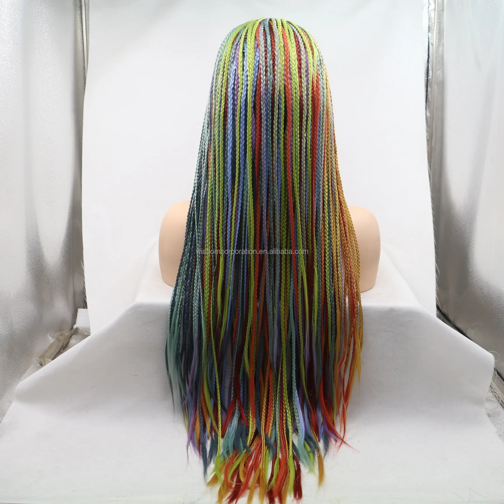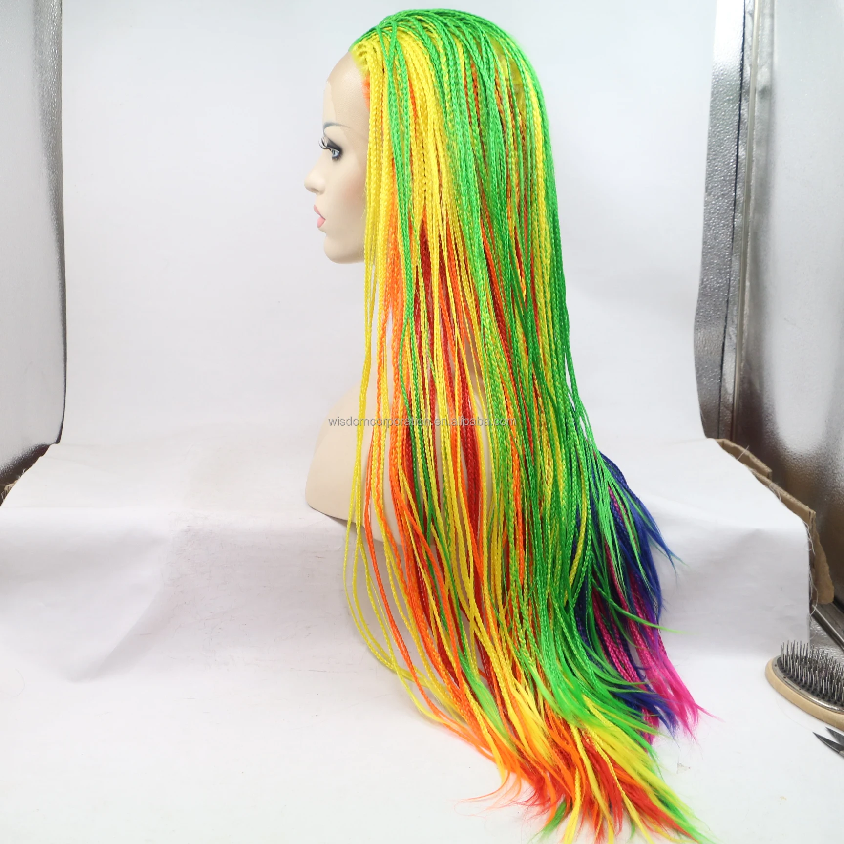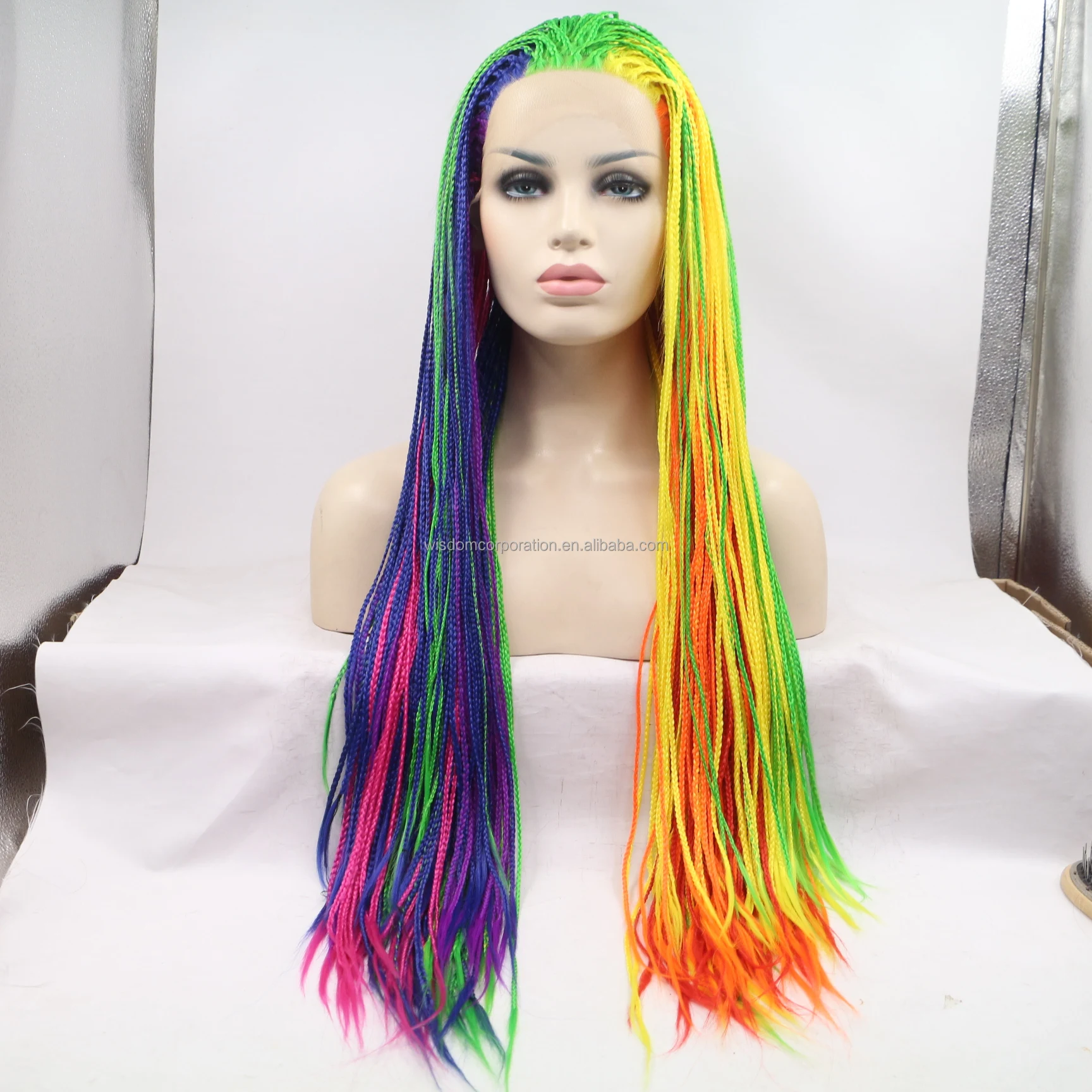 Amazon Popular Seller Full Braid Box Wig 13x4 Front Lace Heat Resistant Colorful Synthetic Hair Braid Wig Cosplay
