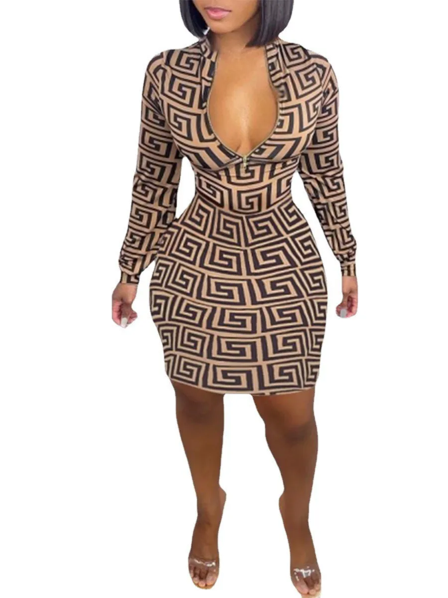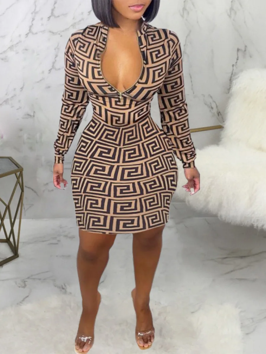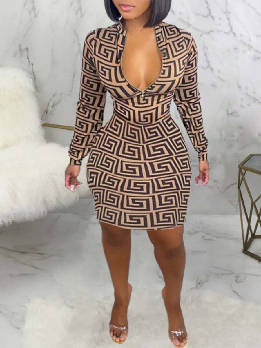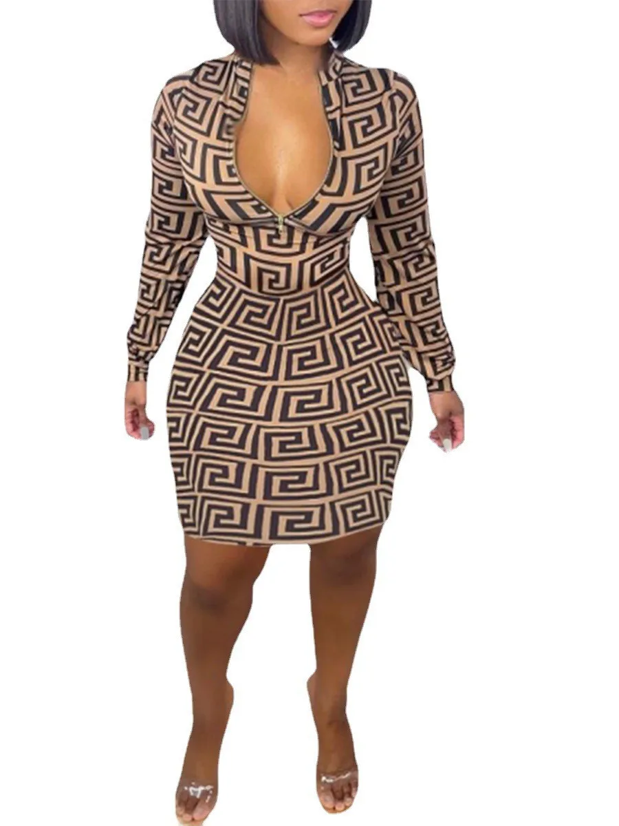 Apparel > Women'S Clothing > Plus Size Women'S Clothing Fall Long Sleeve Zipper Bodycon Designer Xxxxl Plus Size Women'S Dresses