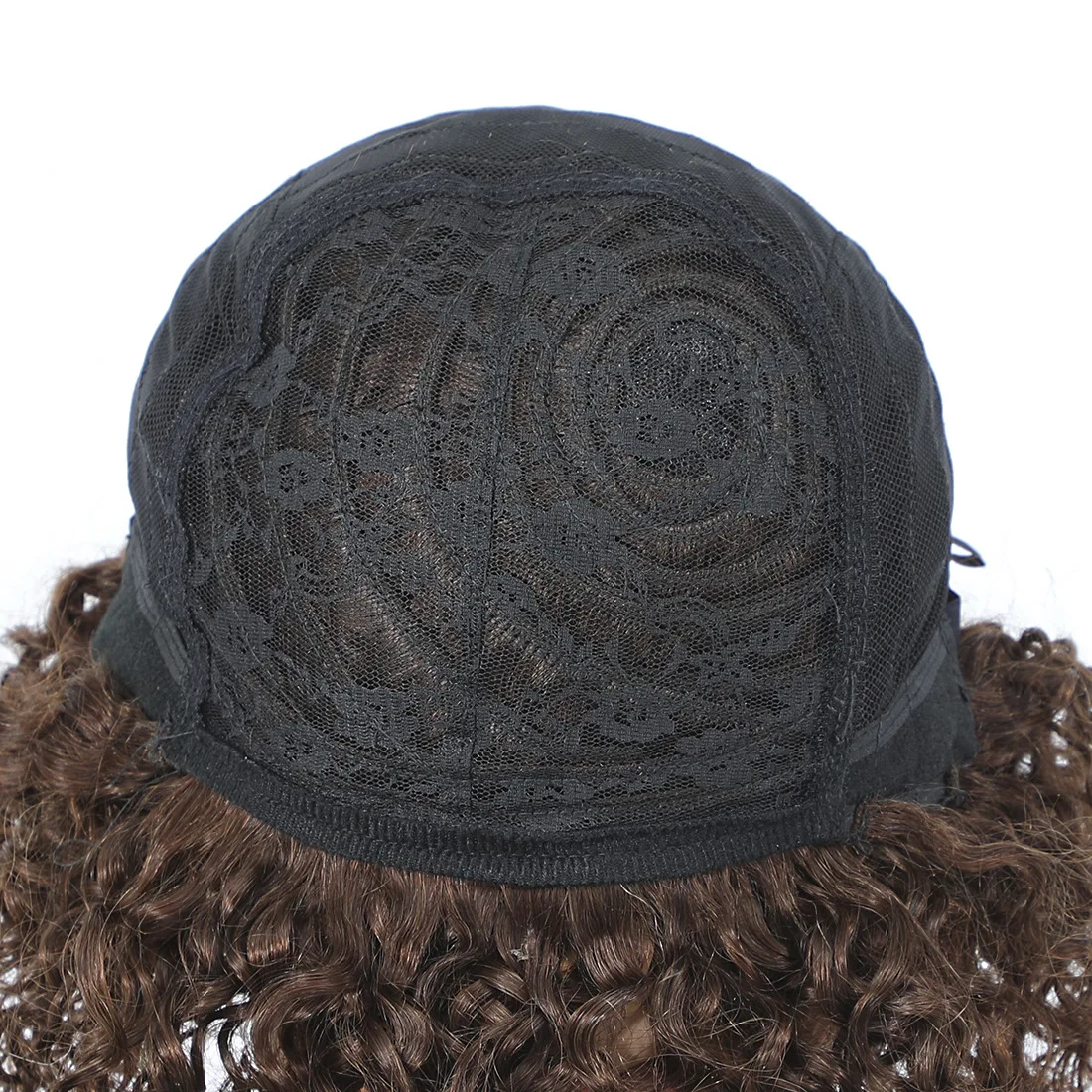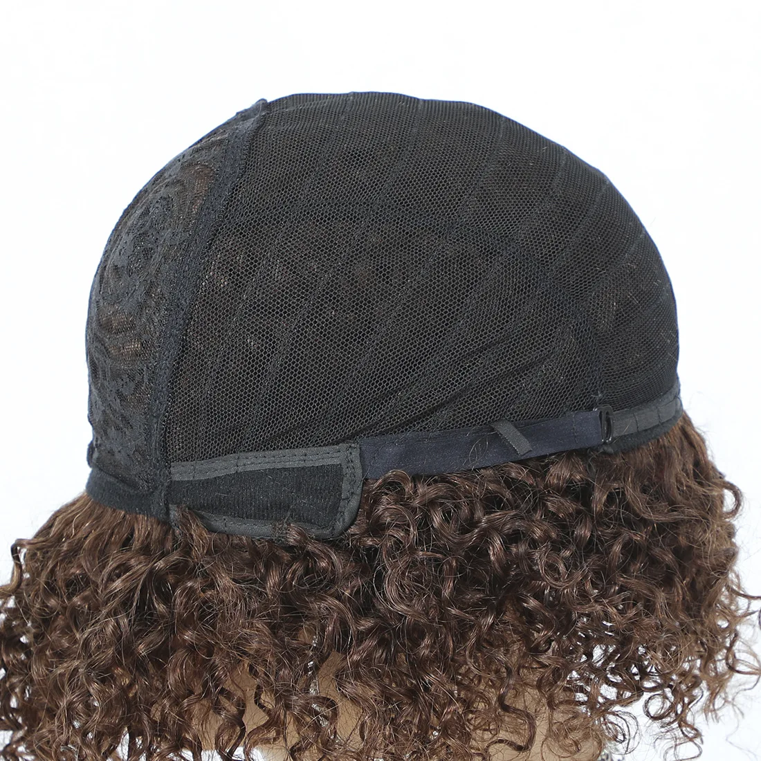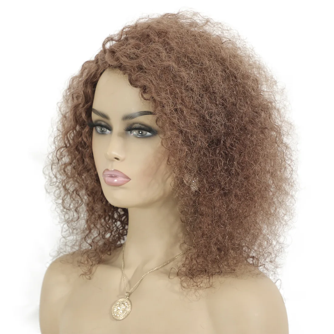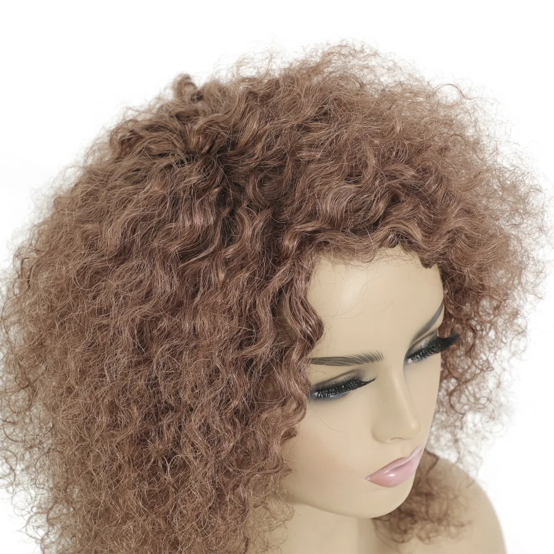 AU New Style Side-swept Human Hair Wigs Jerry curly 30#Light Brown Machine made Women Hair Wigs