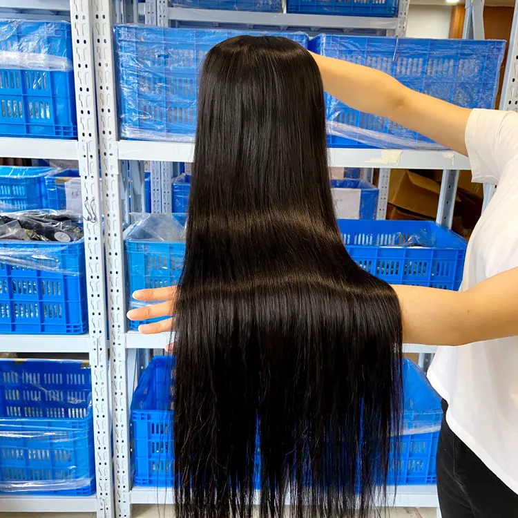 Pelucas frontales de encaje recto de hueso negro con extensiones de cabello natural 100% humano virgen brasileño más vendidas para mujeres