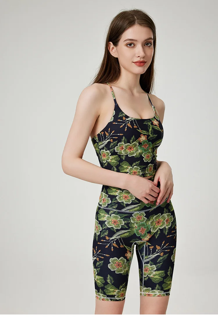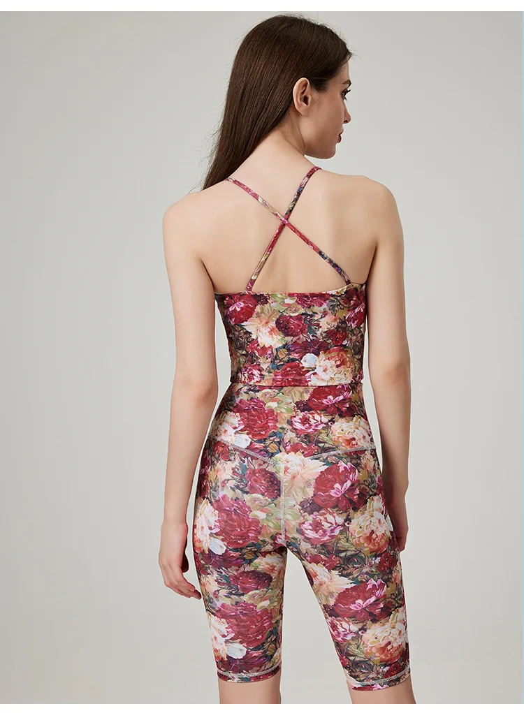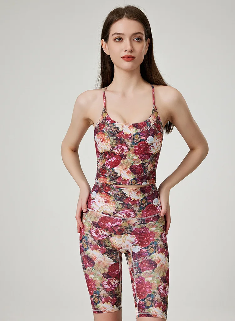 BESTWAYCLOX Romantic Yoga Suit Set Summer Sportswear Shockproof High Strength Fitness Quick Drying Tank Top Yoga Set 2024 custom