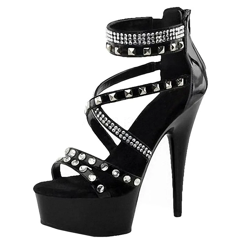 Black stiletto 15 cm rivet Gothic pole dance high heels striptease shoes T-stage model show open toe platform sandals
