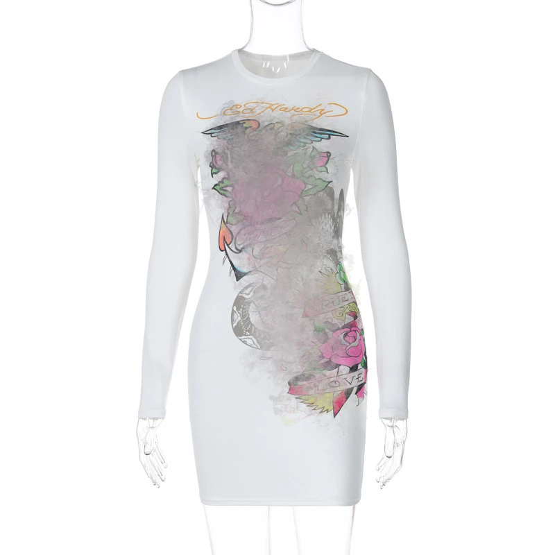 Bomblook C301DS03 Brand Print Outfit Casual Bodycon Dress Lady Mini Y2K Streetwear Party Slim Dress 2024 Spring